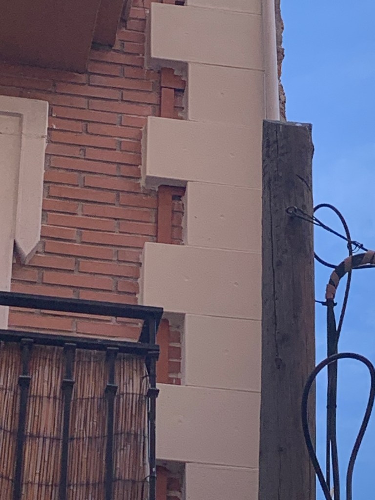 Refuerzo de fábrica de ladrillo mediante presilla metálica de anclada esta y a pilar.