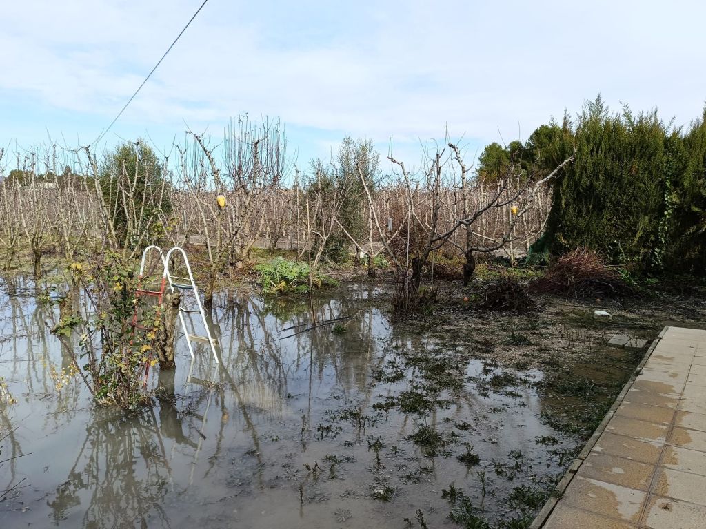 Daños por agua en vivienda por anegamiento de parcela causada por rotura de conducción de riego