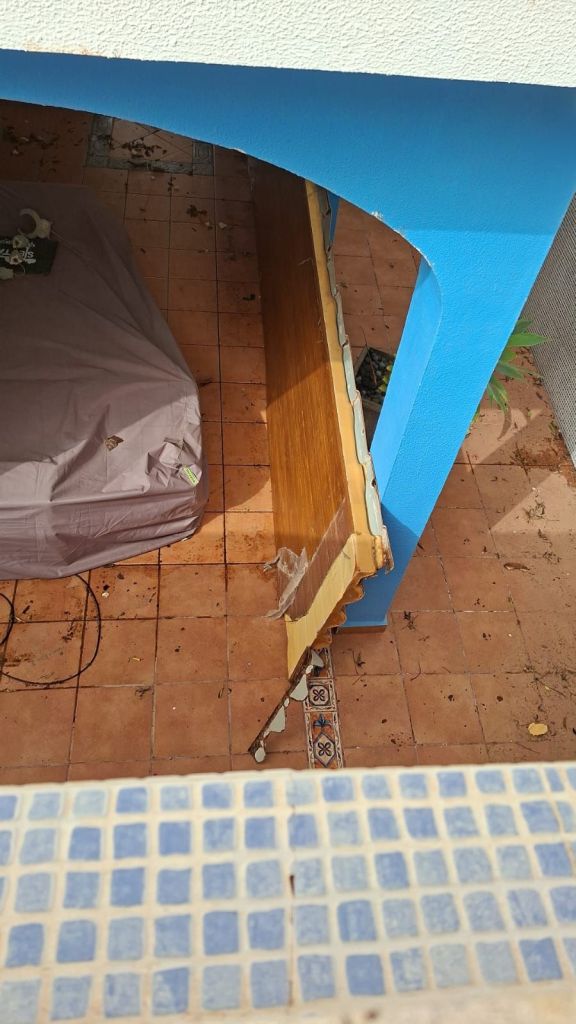 Daños en terraza y muro por fuertes vientos